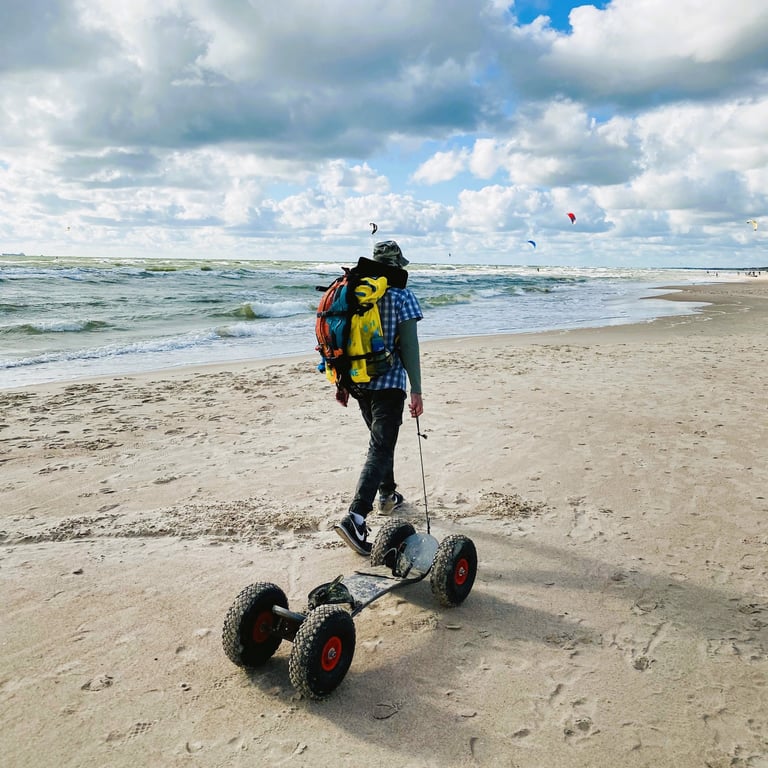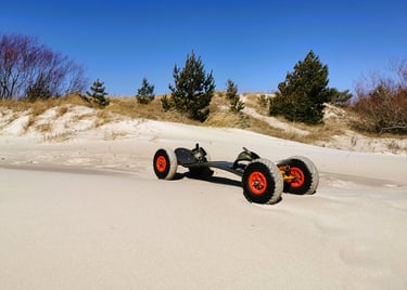Snieglentės alternatyva vasarai! Skirta smagiai leistis nuokalne, tačiau galima važiuoti ir vėjo pagalba naudojantis jėgos aitvaru arba sparnu. Yra elektrinis varijantas.